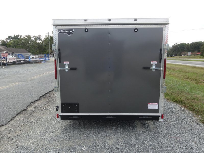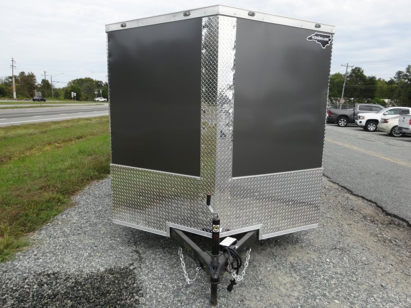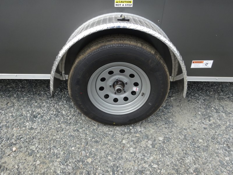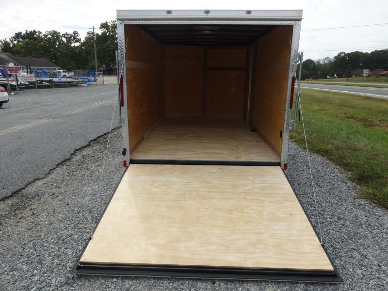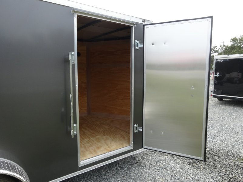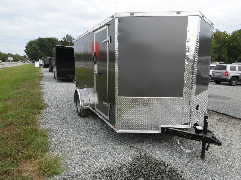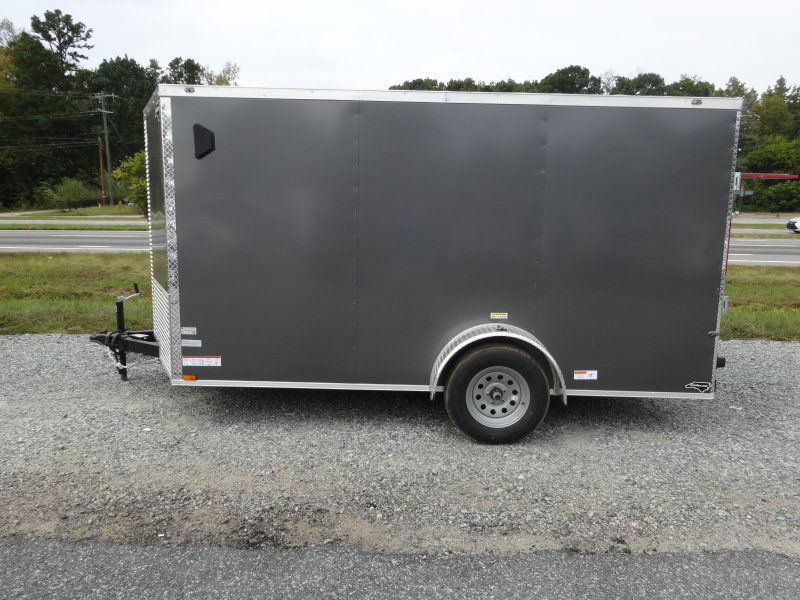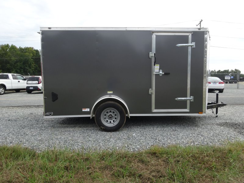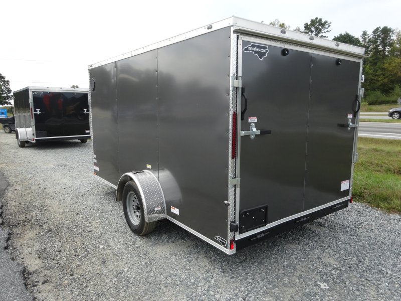 This v-nose 7×12 enclosed cargo trailer has 6’3″ interior height, a single braking axle with a rating of 2,990 lb GVWR. This type of trailer is ideal for light-duty or residential tasks. This model has a side door, a rear ramp door, and a 2000 lb jack.