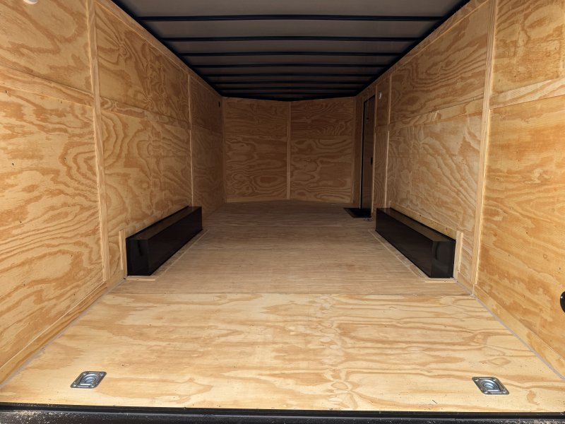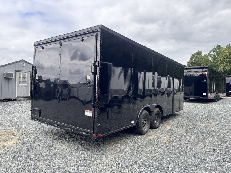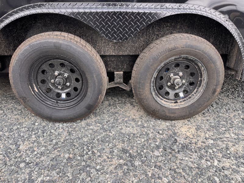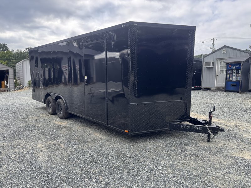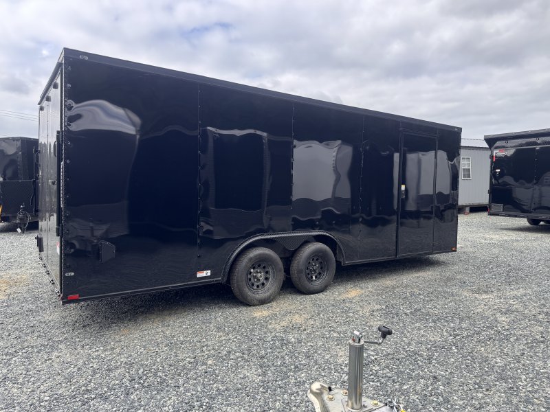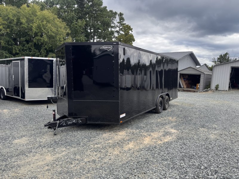 This v-nose 8.5×20 enclosed cargo trailer has a 6’6″ interior height, tandem axles with brakes with a rating of 7,000 lb GVWR. This type of trailer is ideal for light-duty or residential tasks. This model has a side door, a rear ramp door, and a 2000 lb jack.