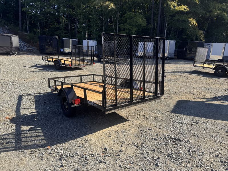 “This standard 10-foot length utility/landscape trailer has a 60″” width ideal for home and garden tasks. GVWR rating of 2630 lb. An upgraded axle to 3500lbs. This trailer features 12″” top rail, 48″” heavy-duty landscape gate, and LED lighting package.