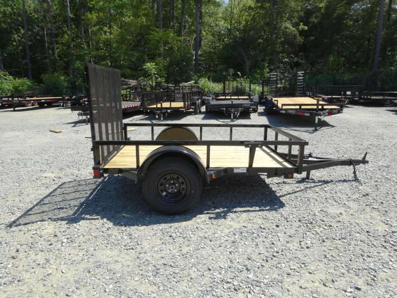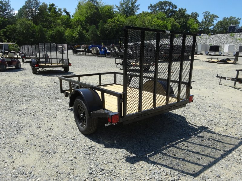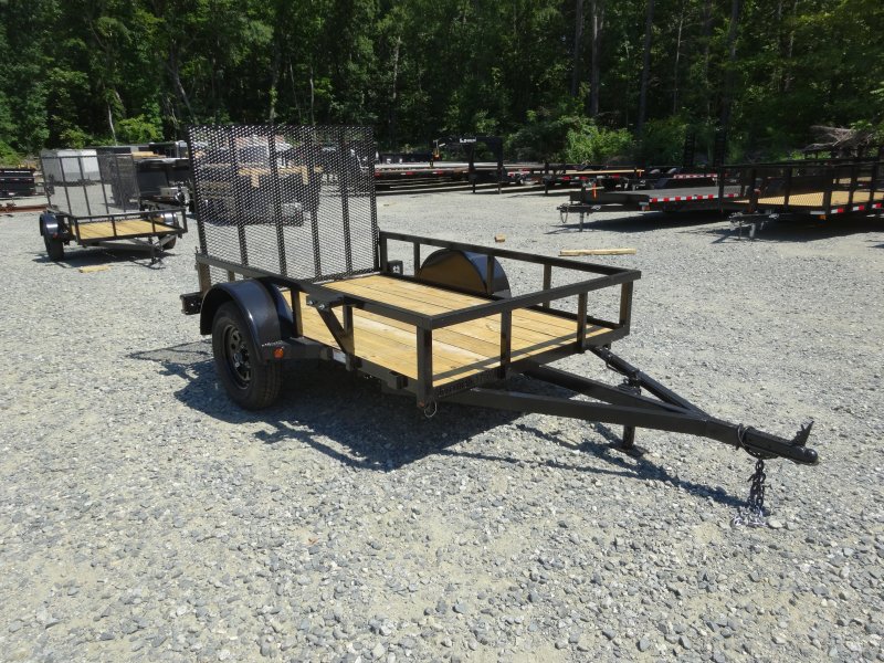 “This standard 8-foot length, entry-level landscaping/utility trailer has a 60″” width and 48″” gate. GVWR rating of 3000 lb. Top rail, wood deck.