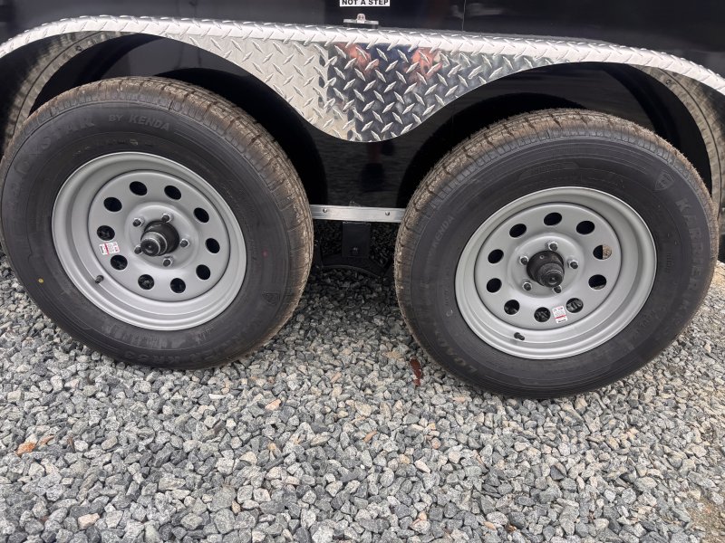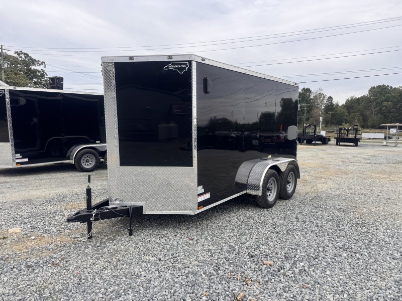 “This v-nose 6×12 enclosed cargo trailer has 6’3″” interior height, a tandem braking axle with a rating of 7,000 lb GVWR. This type of trailer is ideal for light-duty or residential tasks. This model has a side door, a rear ramp door, and a 2000 lb jack.
