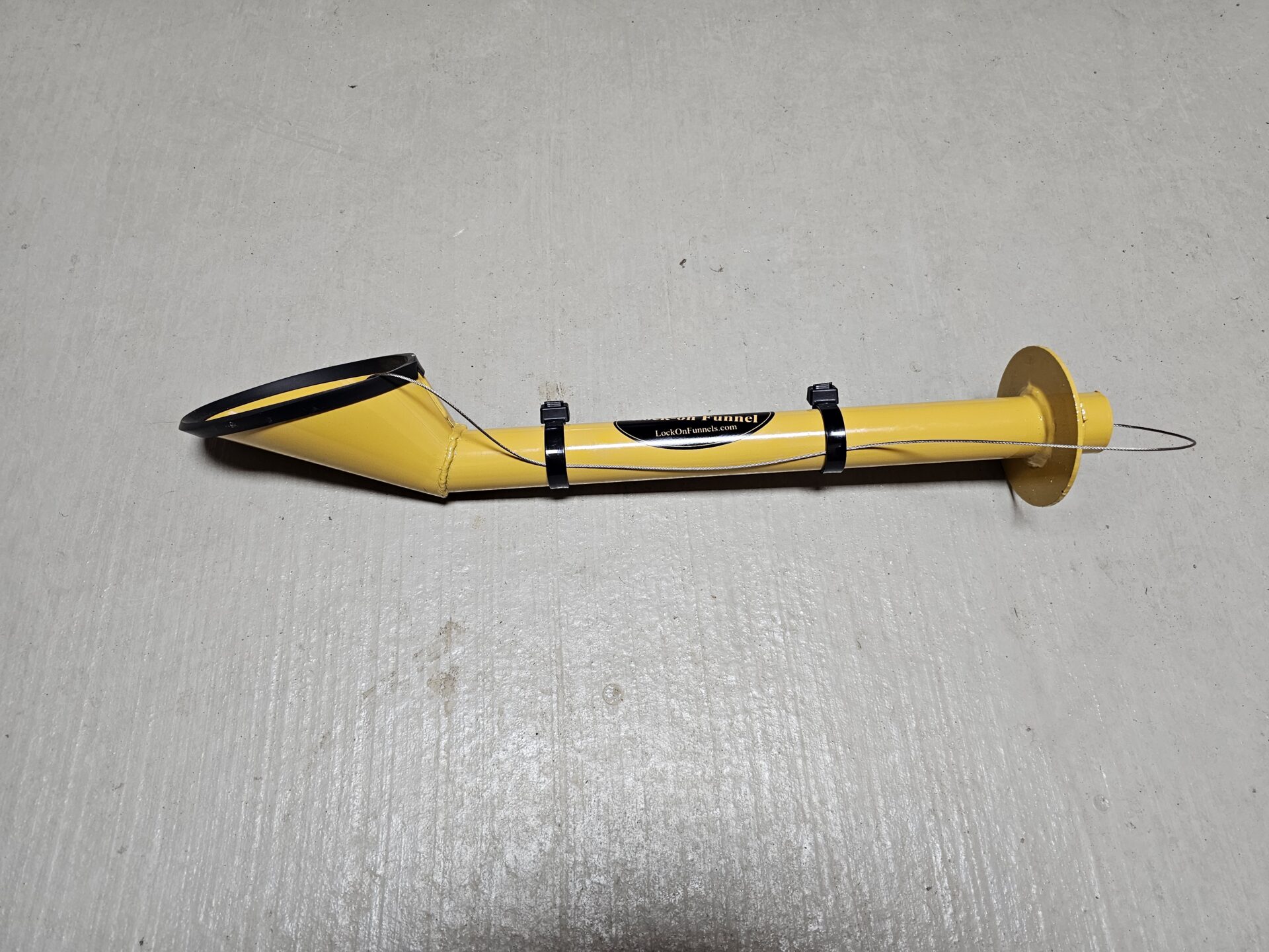 2 neoprene sponge plugs attached to supporting cable keeps debris out of the funnel during non-use.